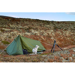 Leichtzelt mit stabilem Gestänge: 2 Stangen aus Duraluminium, Zelt mit Trekkingstöcken, Ästen oder mit 2 Abspannleinen an Bäumen aufstellbar - dieses Trekking-Zelt ist allen Herausforderungen gewachsen