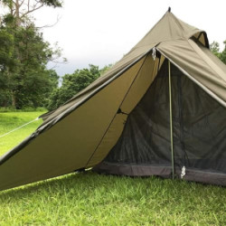 Geräumig Solo Tipi Zelt - Ein stilvolles Tipi-Zelt für alleinreisende Camper. Zeltgröße: B2,4xT2,4xH1,5m. Ein Innenzelt aus hochdichtem Netz ist enthalten. Größe des Innenzeltes: B2,2xL1xH1,35m.