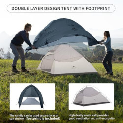 【Verbesserter Rahmen】Das verbesserte Naturehike Cloud-Up 2-Zelt hat eine doppelte Y-förmige Struktur, und das Design des in der Mitte befestigten Windseils verbessert die Stabilität des Zeltes.