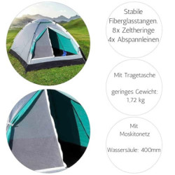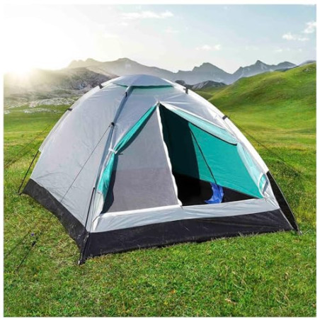 PRAKTISCH BEIM CAMPEN - Diese praktische 2 Mann Campingzelt ist ideal für den Einsatz beim Camping, Festivals oder anderen Outdoor-Aktivitäten. Das Festivalzelt ist in aus strapazierfähigem, wasserdichtem Polyester gefertigt, um vor Regen, Wind und anderen Elementen zu schützen.