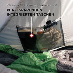 Das Innenzelt ist atmungsaktiv, schwer entflammbar und mit einem blickdichtem Moskitonetz versehen