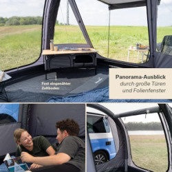 ✔ FLEXIBLER ANBAU: Dank der Verbindung über die Kederleiste kann das Luft-Vorzelt schnell am Mini-Van angebracht und ebenso leicht wieder gelöst werden, ohne das Zelt abbauen zu müssen – ideal für spontane Ausflüge.